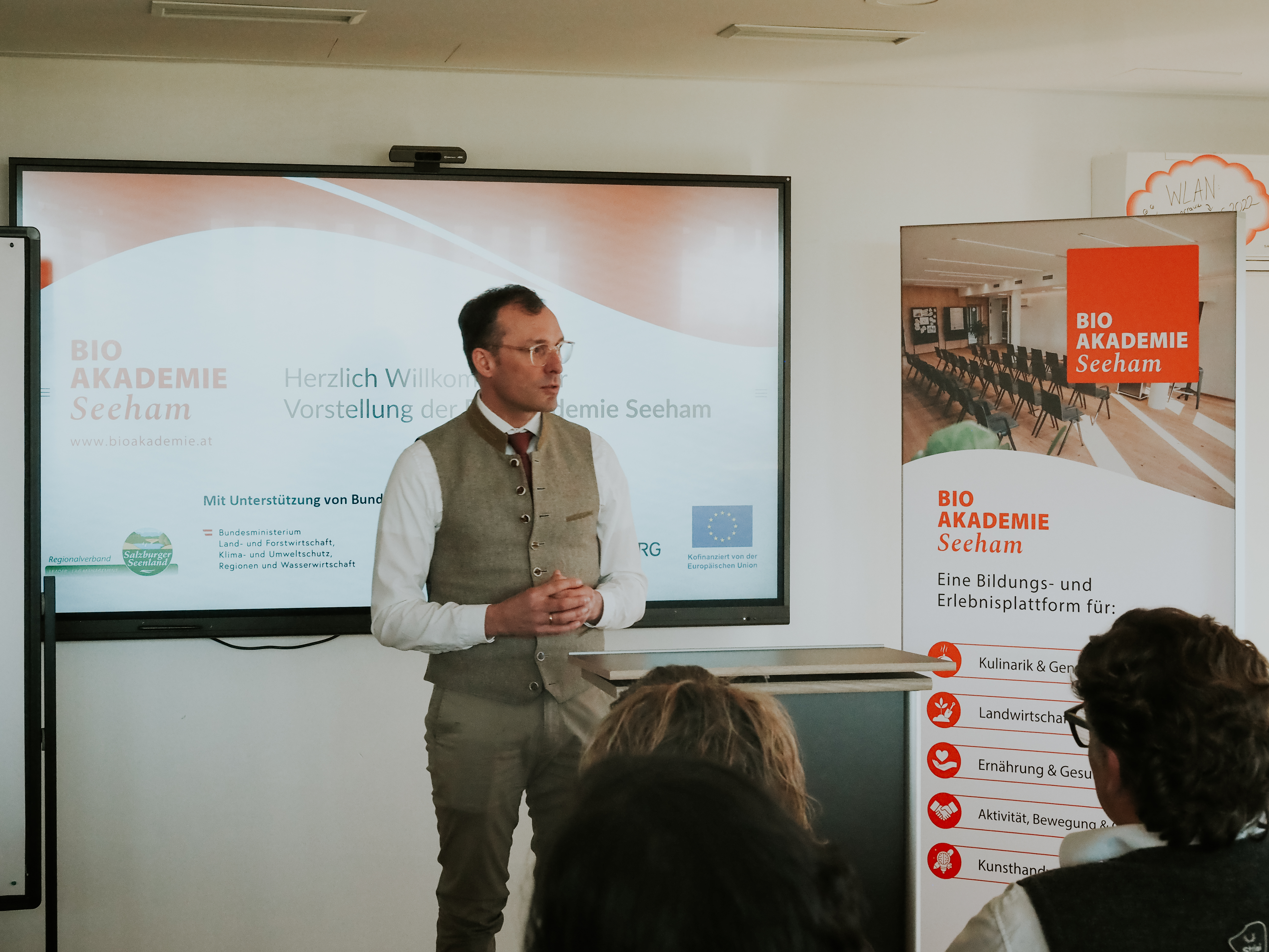 Durch den Vormittag führte Thomas Wallner Obmann vom Verein Vermarktungsgemeinschaft Biodorf Seeham, der mit seiner Frau die Salzburger Ölmühle betreibt. Im BioArt Campus entstehen dort hochwertigste Öle in Bio Qualität – kalt gepresst, mit viel Handwerk und Bewusstsein für Rohstoffe.
